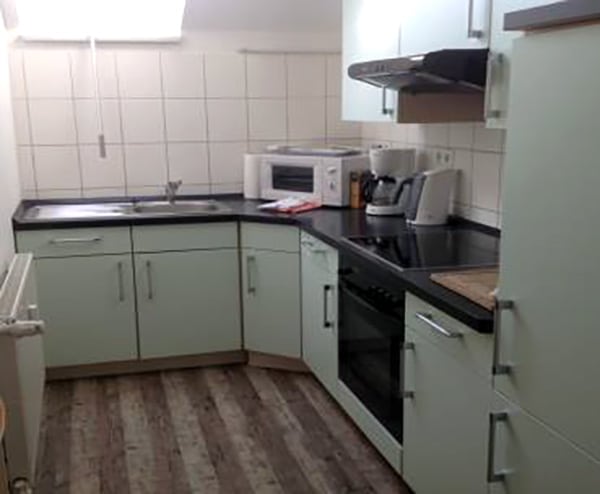 - voll ausgestattete Küche mit Herd, Kühlschrank, Kaffeemaschine, Toaster, Wasserkocher