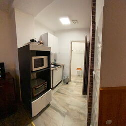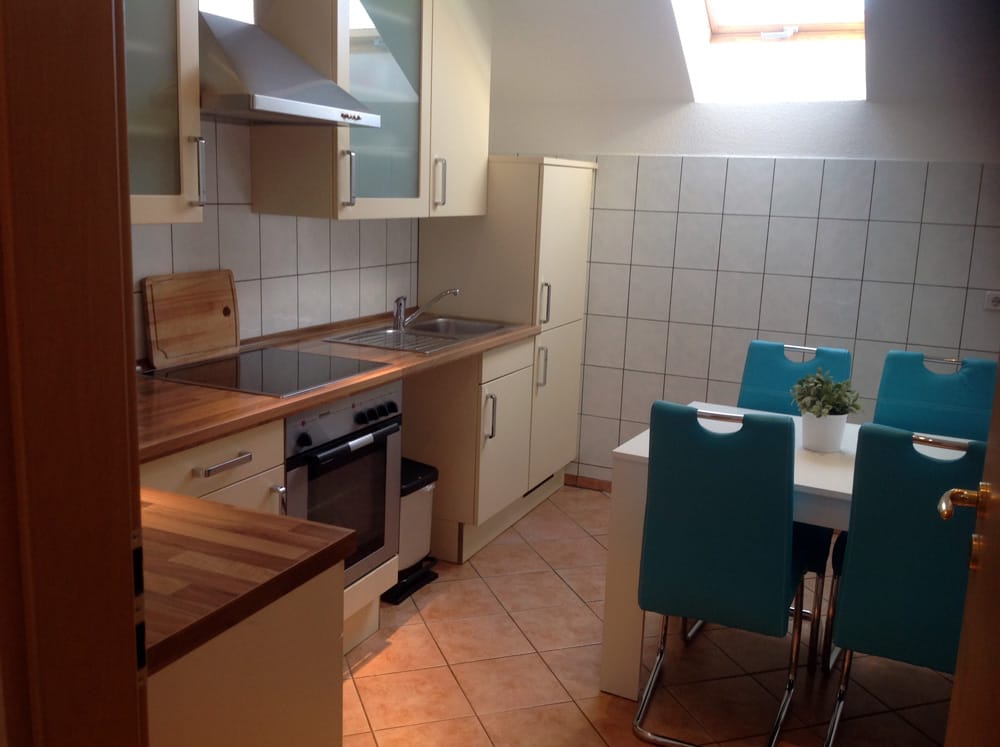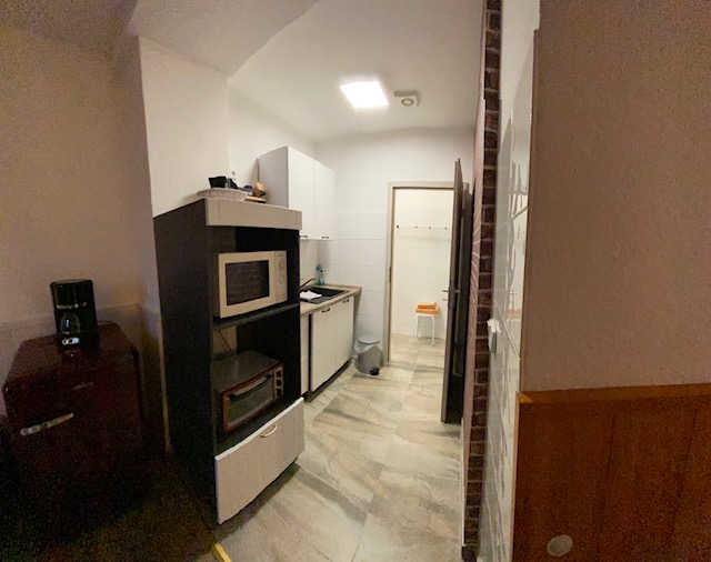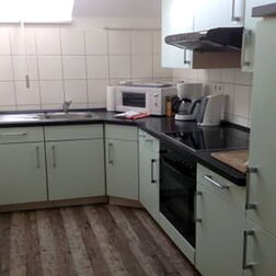 - voll ausgestattete Küche mit Herd, Kühlschrank, Kaffeemaschine, Toaster, Wasserkocher